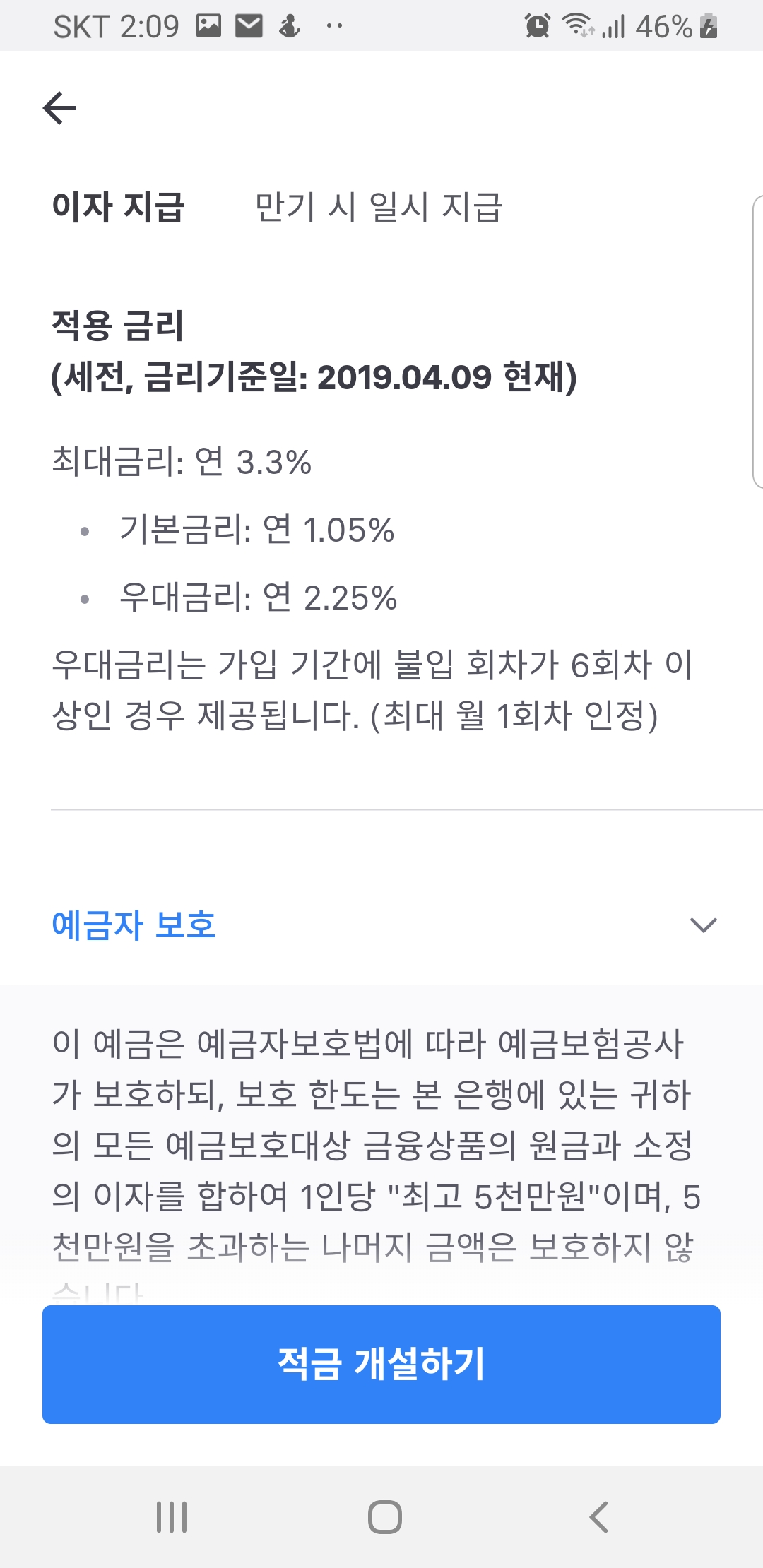 나는 우선, 토스 앱에 신규 가입하고 하나은행 통장과 제휴 적금통장을 개설했다. 여유 있을 때는 최소 1000원 부터 최대 월 20만원까지 자유로이 입금 가능해서 자금 사정에 따라 소소하게 적금 넣기에 좋을 듯 하다. 예금자보호도 5천만원까지 된다고 한다.