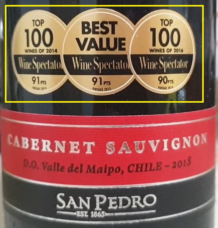 2014년 Wine Spectator's Top 100 91점 2016년 Wine Spectator's Top 100 90점 |