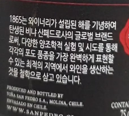 (4) 생산지/와이너리 : D.O.Valle del Maipo(칠레)/Vina San Pedro S.A.(설립 1865년)
