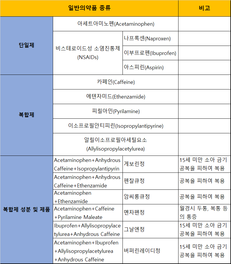 이제 현대인들이 많이 앓고 있는 두통에 복용하는 일반의약품과 관련하여 정리해 보겠다.