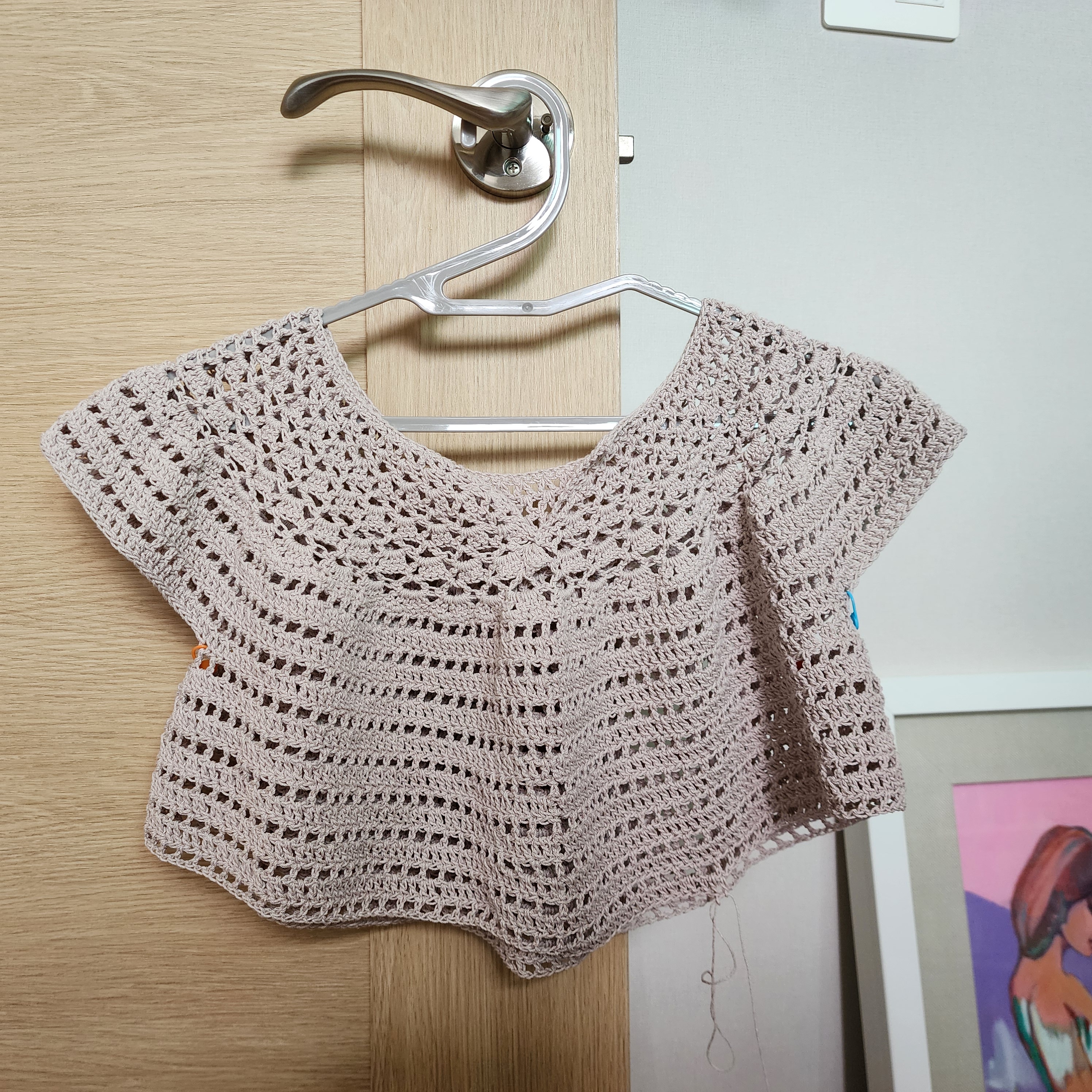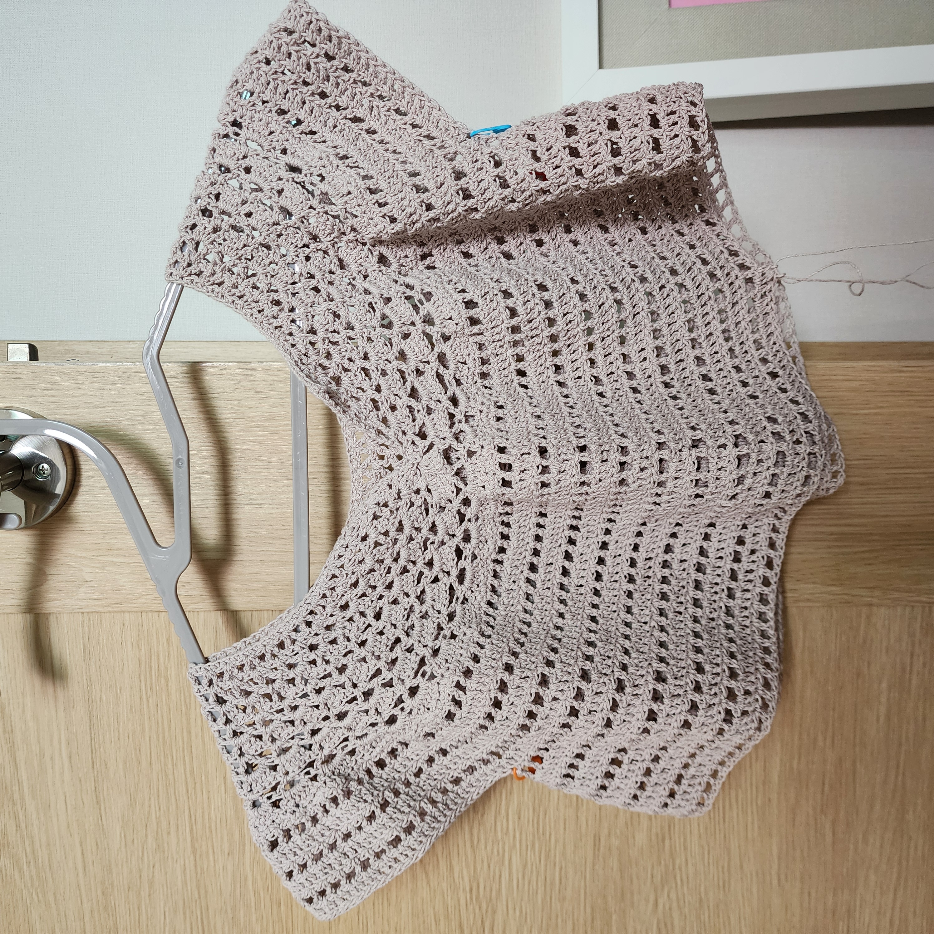 요크 부분이 엉성해 보이면 안 예쁠것 같아서 조금 촘촘히 떴더니 작게 나왔나보다.