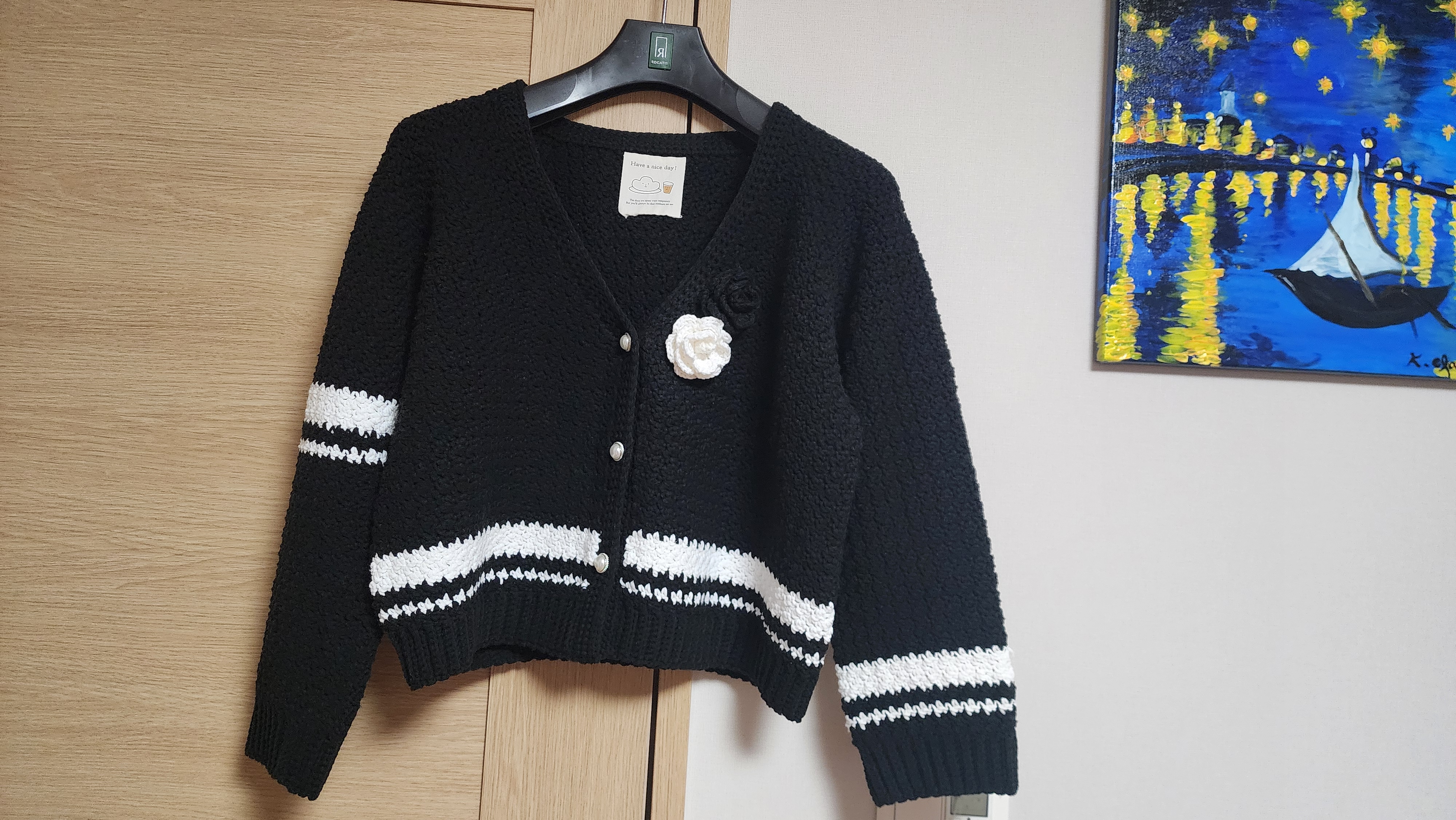 7. 이번 검정 가디건은 디자인, 색상, 단추 위치 등
