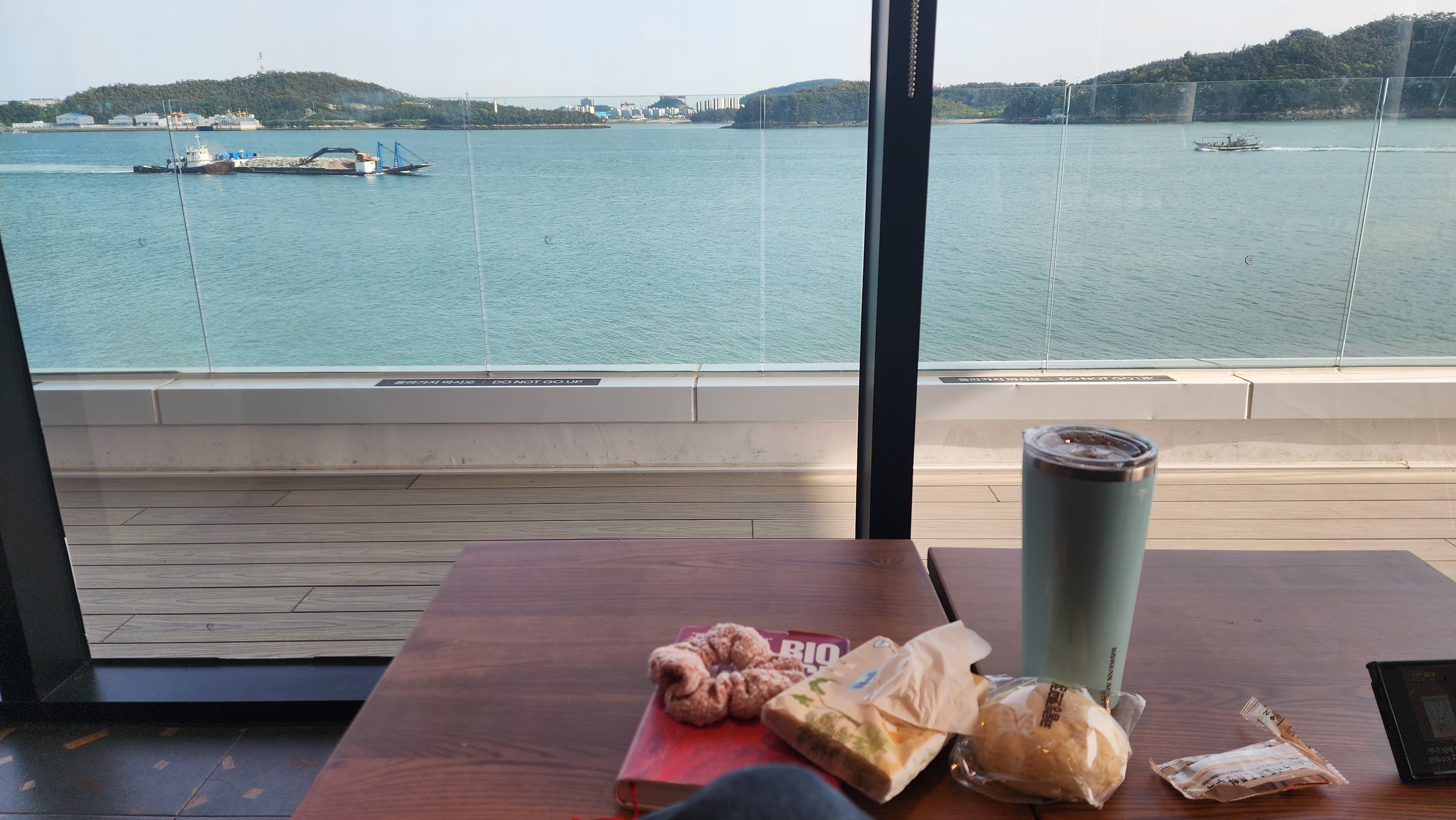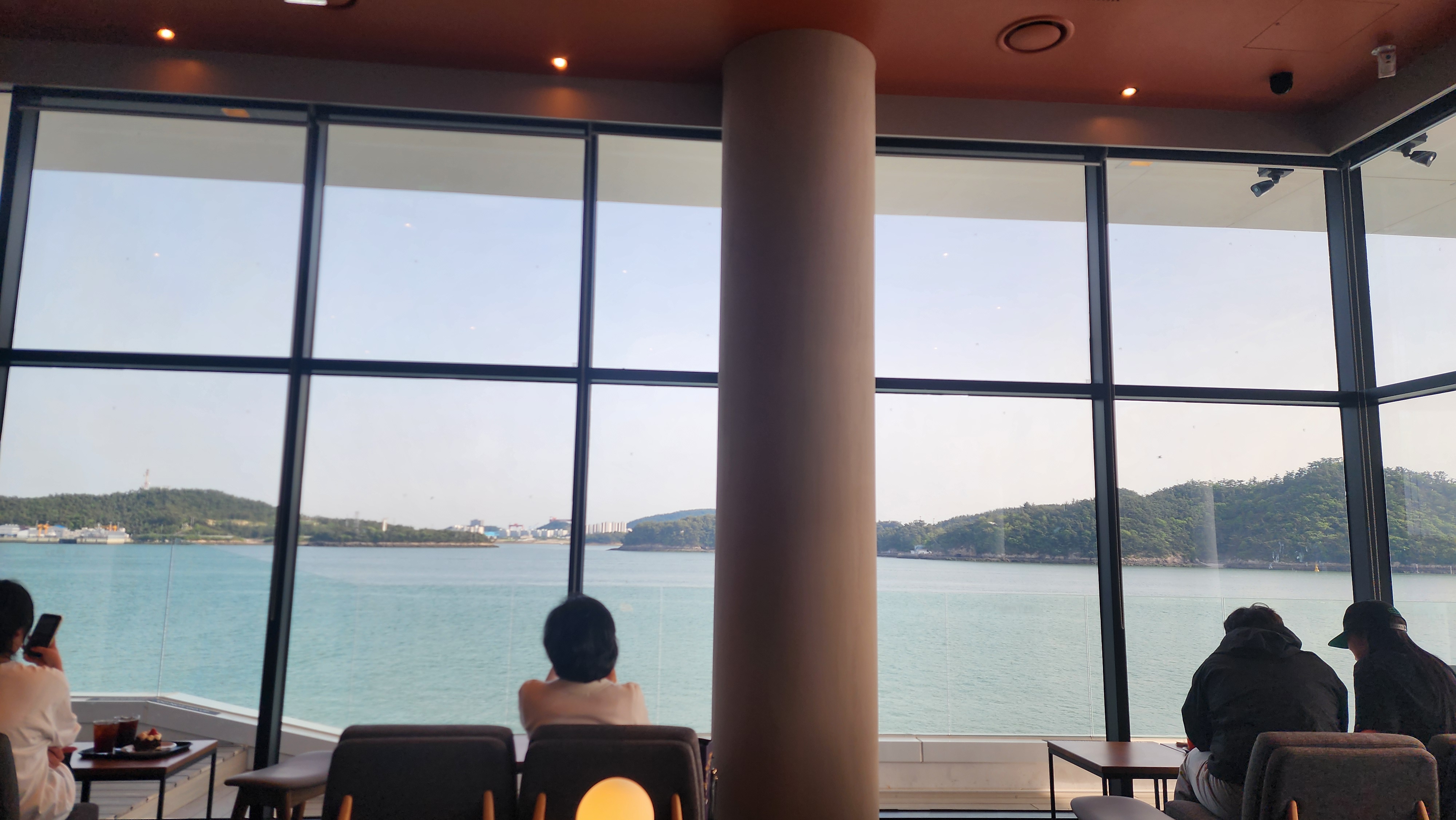 마침 창가 바다를 정면으로 바라보는 자리가 나서
