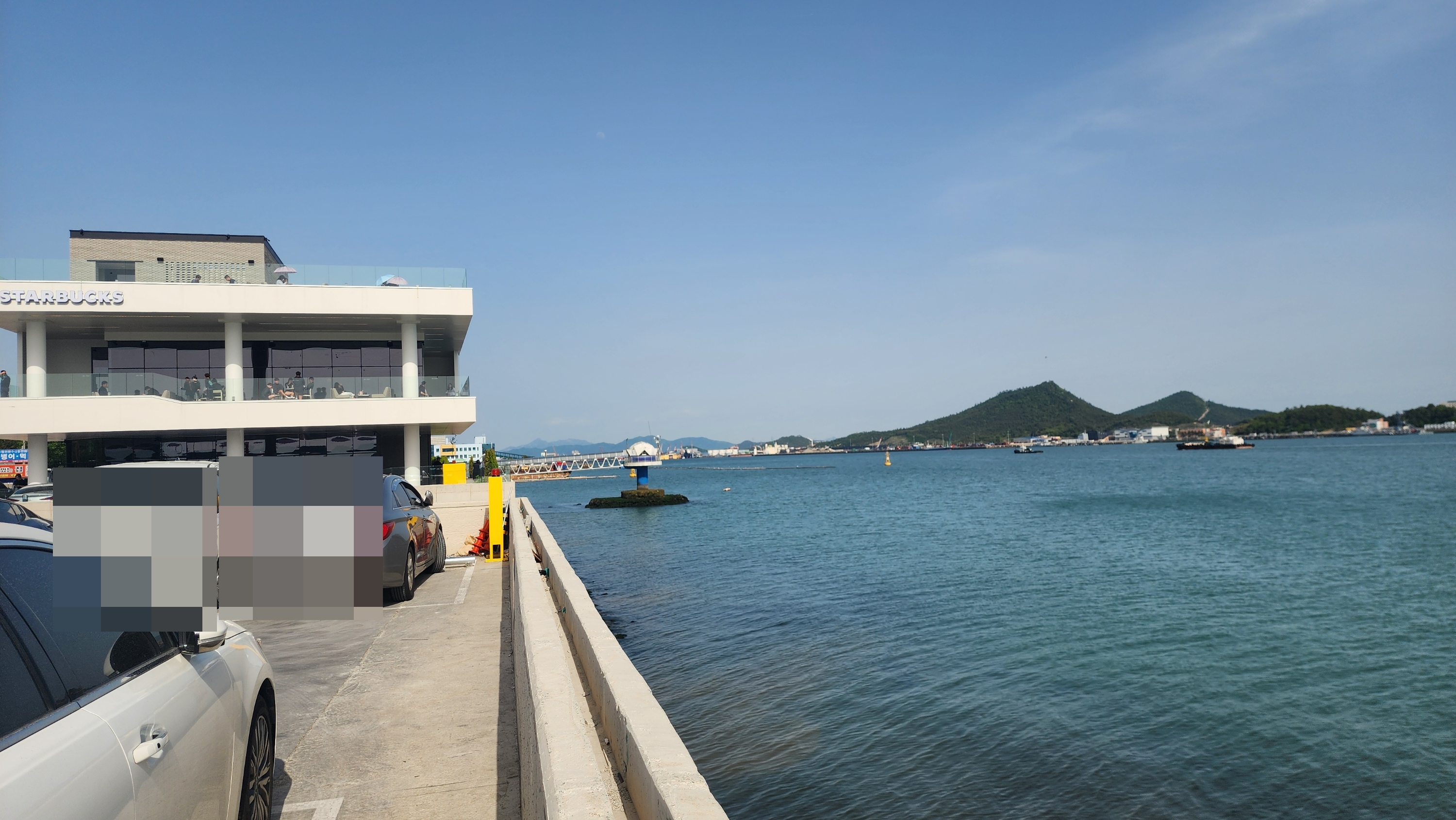 이렇게 바닷가에 하얀 건물의 스타벅스가 있었어요.