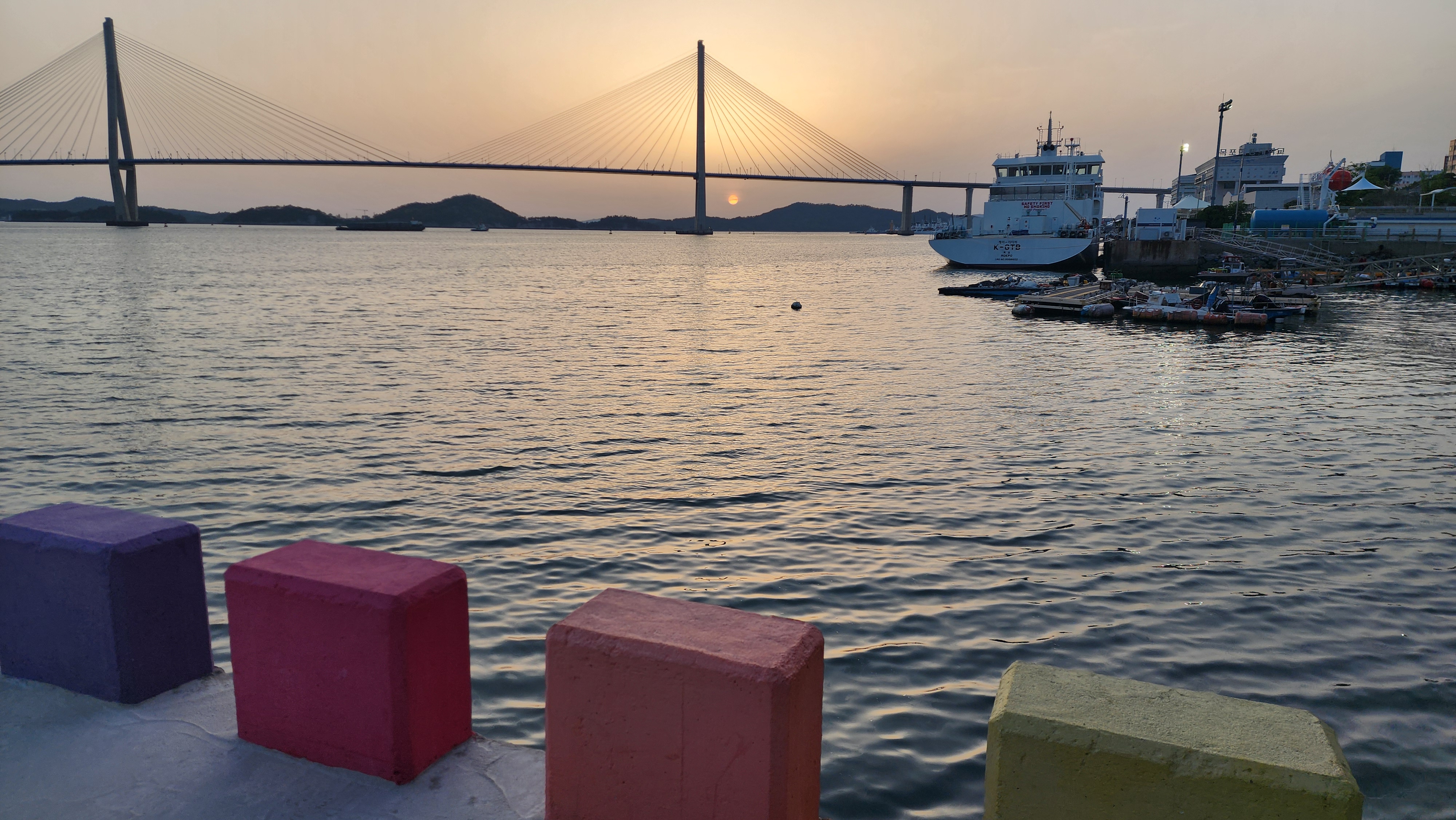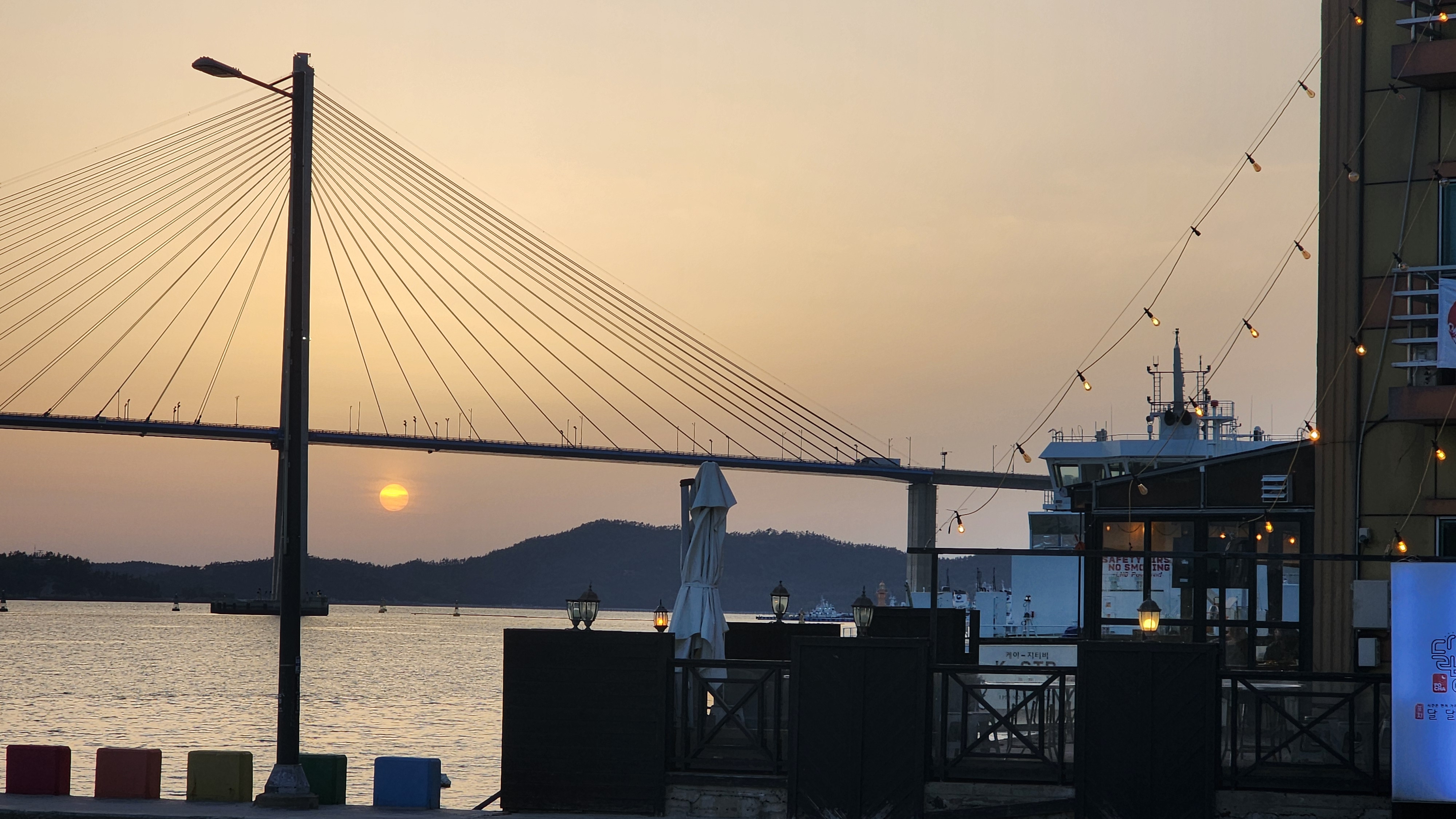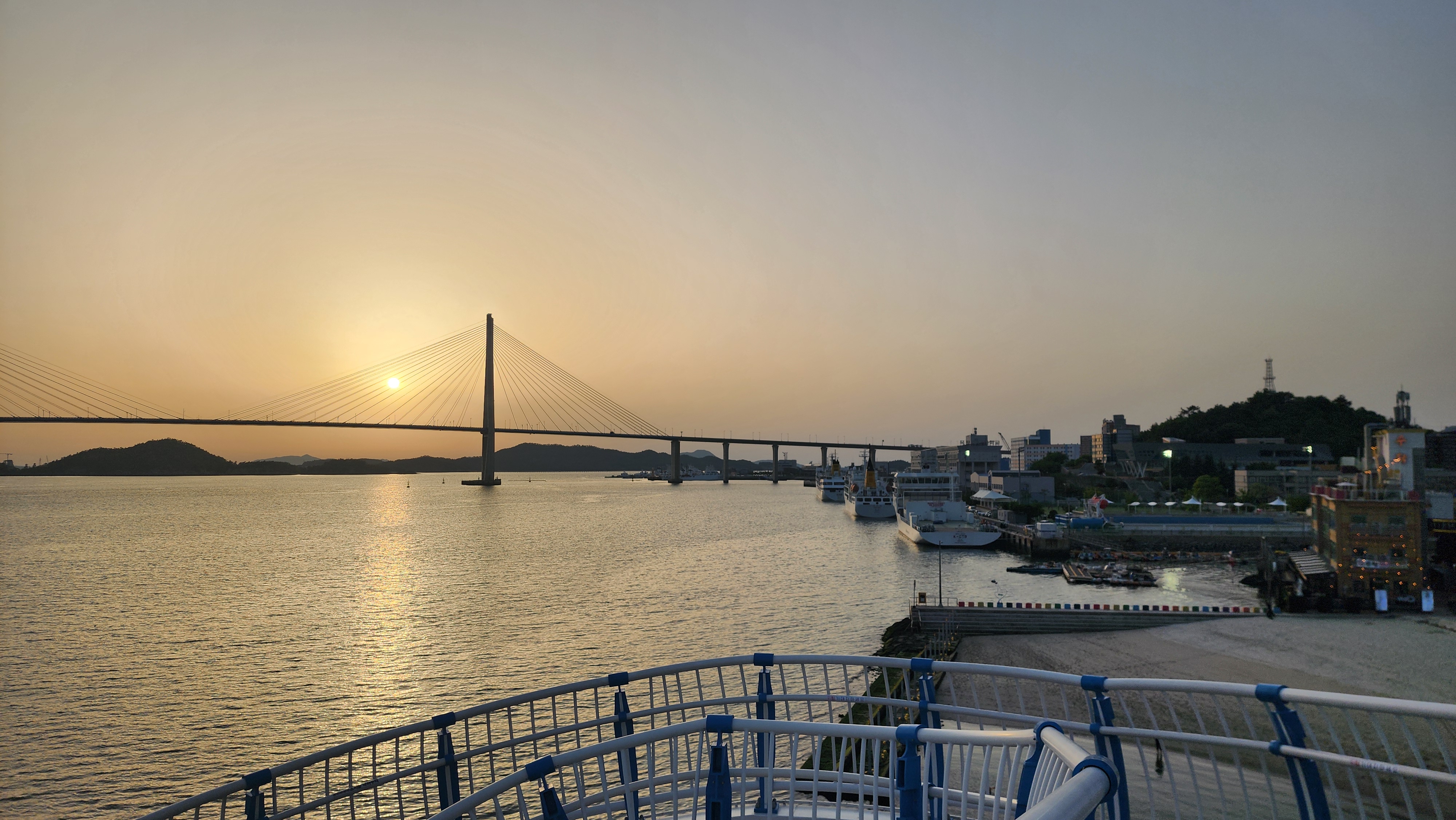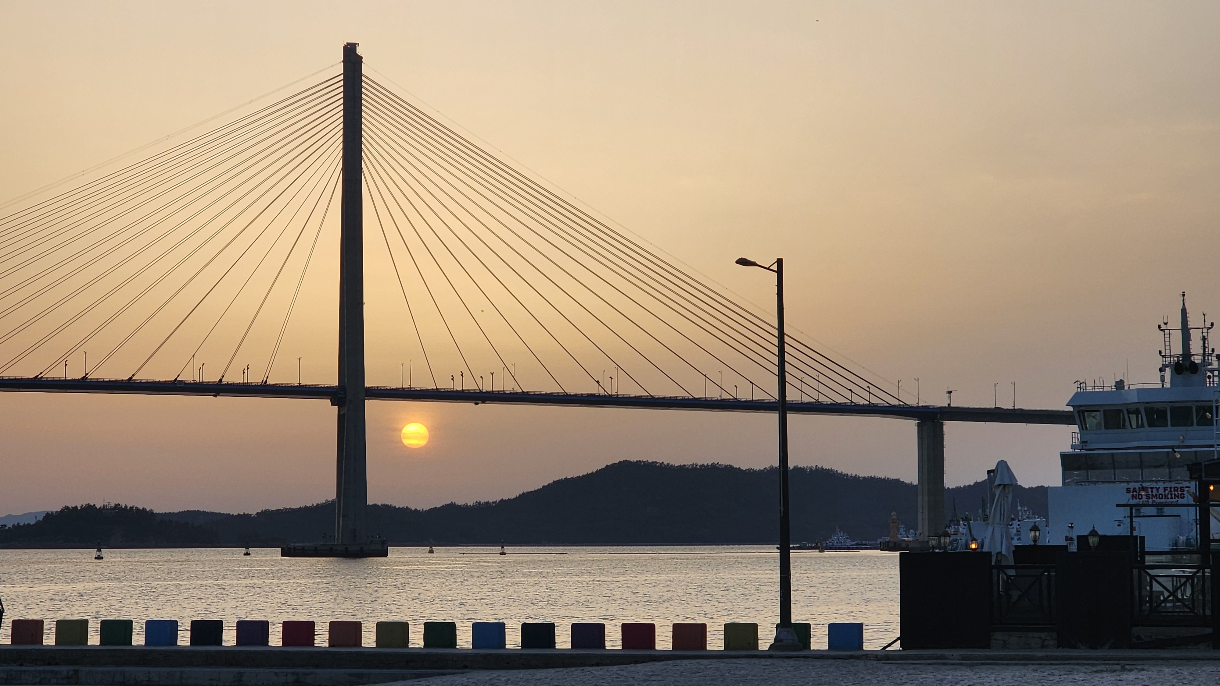 석양의 태양과 바다, 다리가 다시 봐도 참 멋지네요.