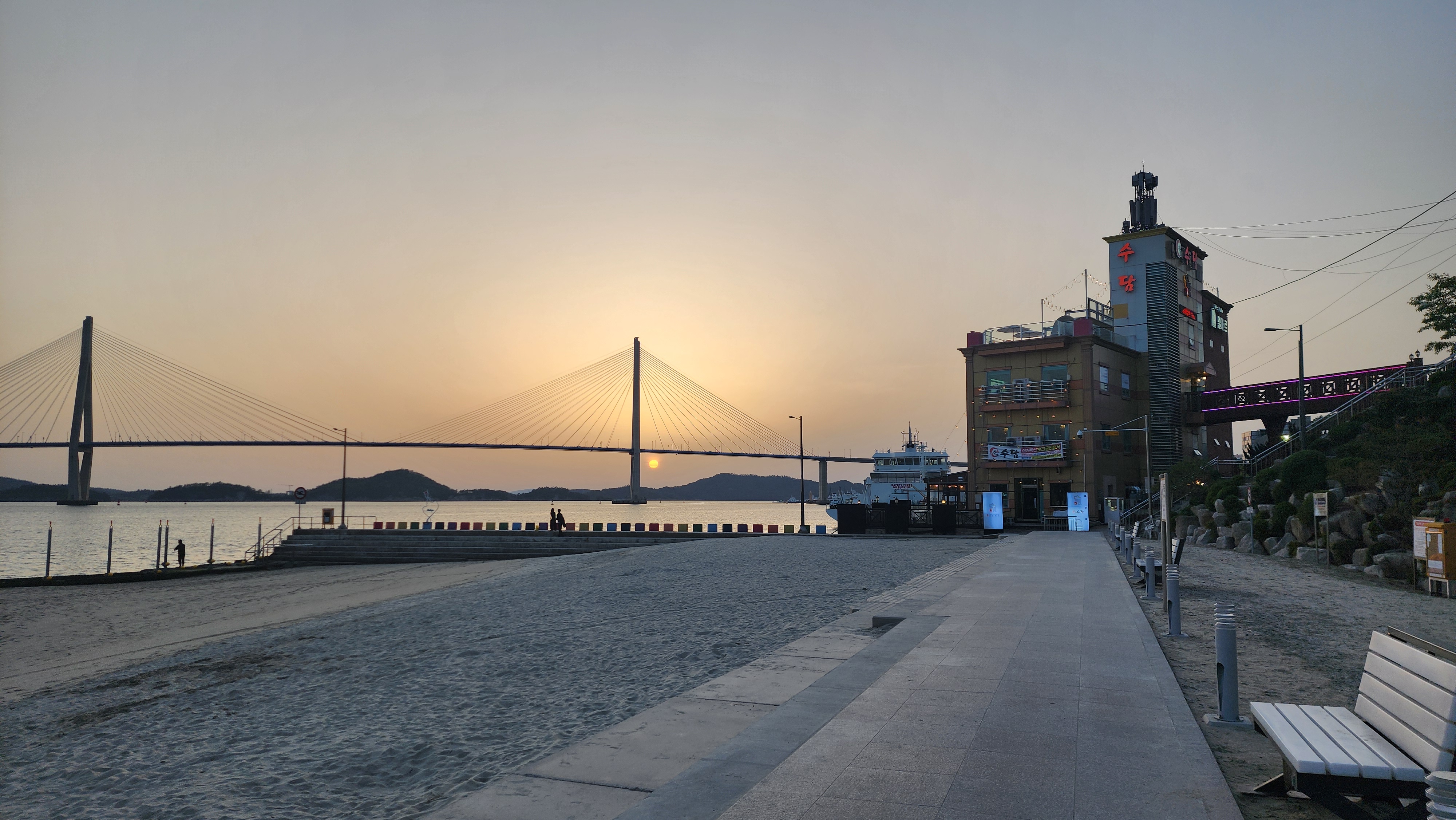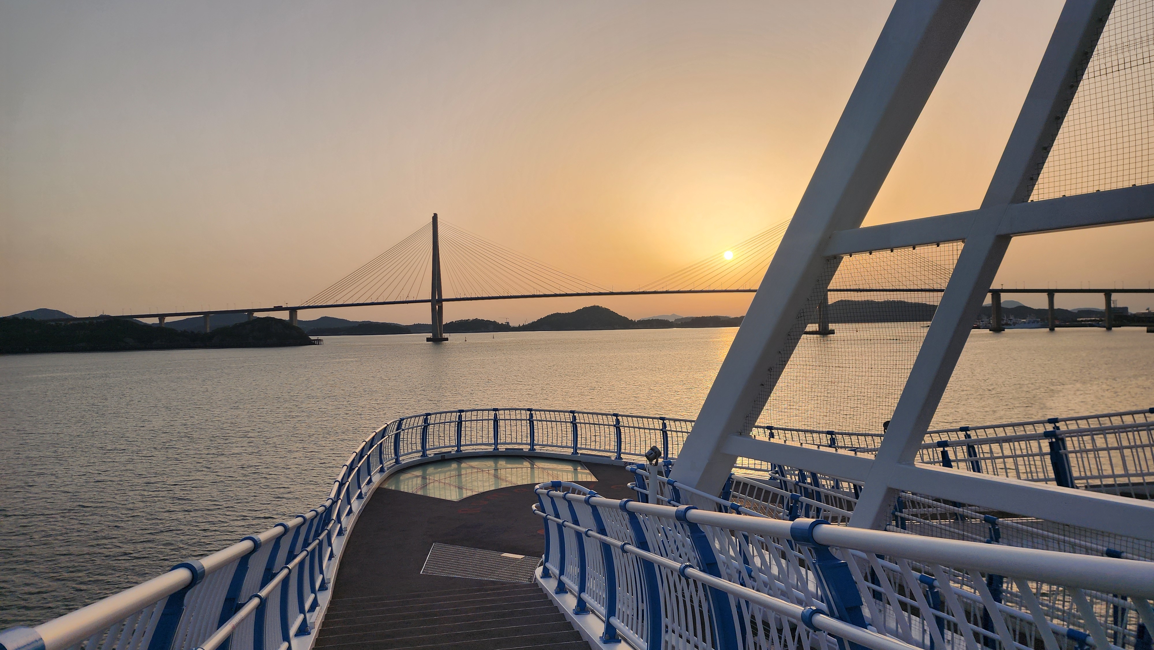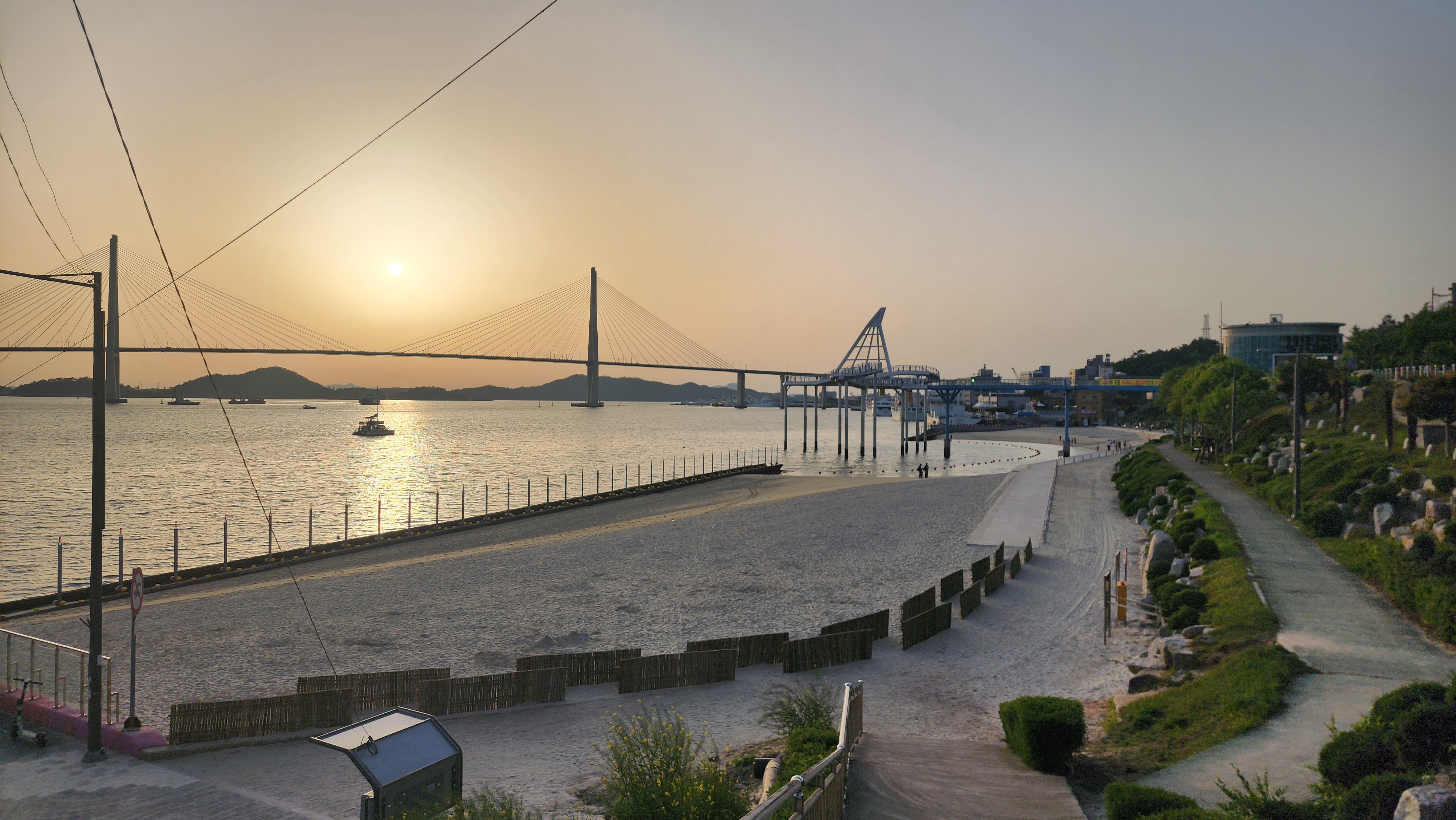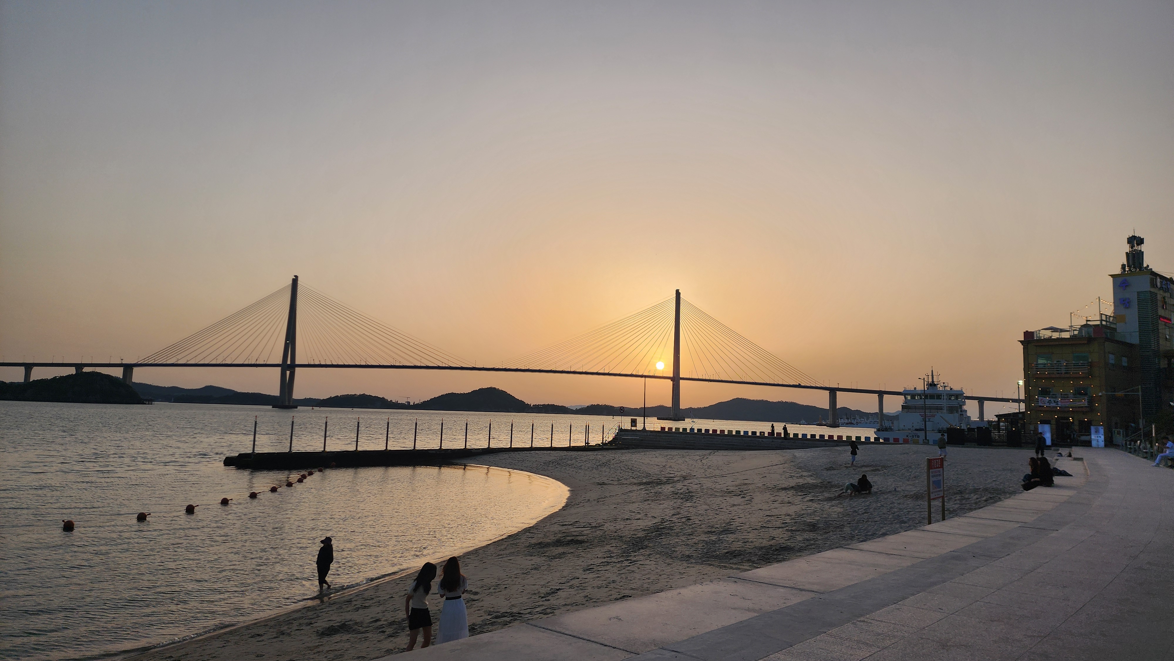 석양의 태양과 바다, 다리가 다시 봐도 참 멋지네요.