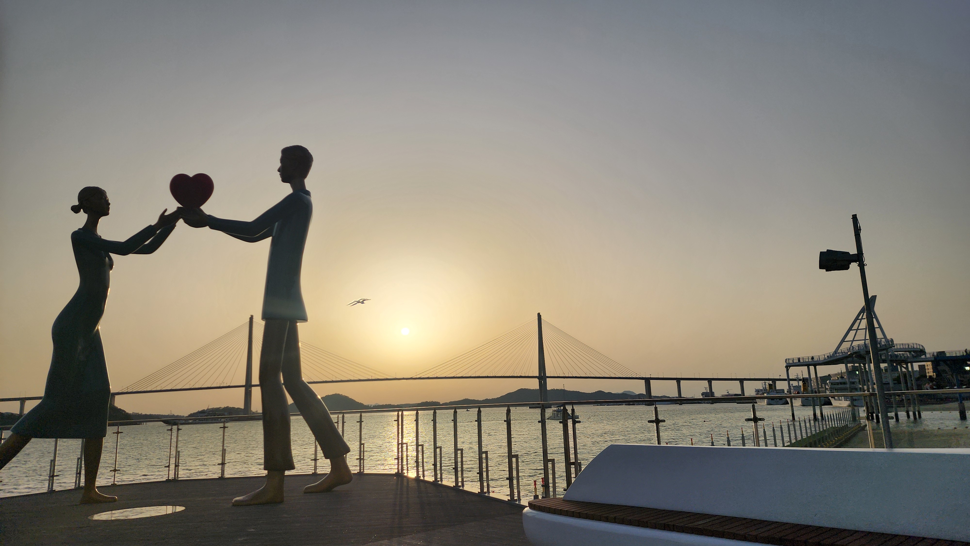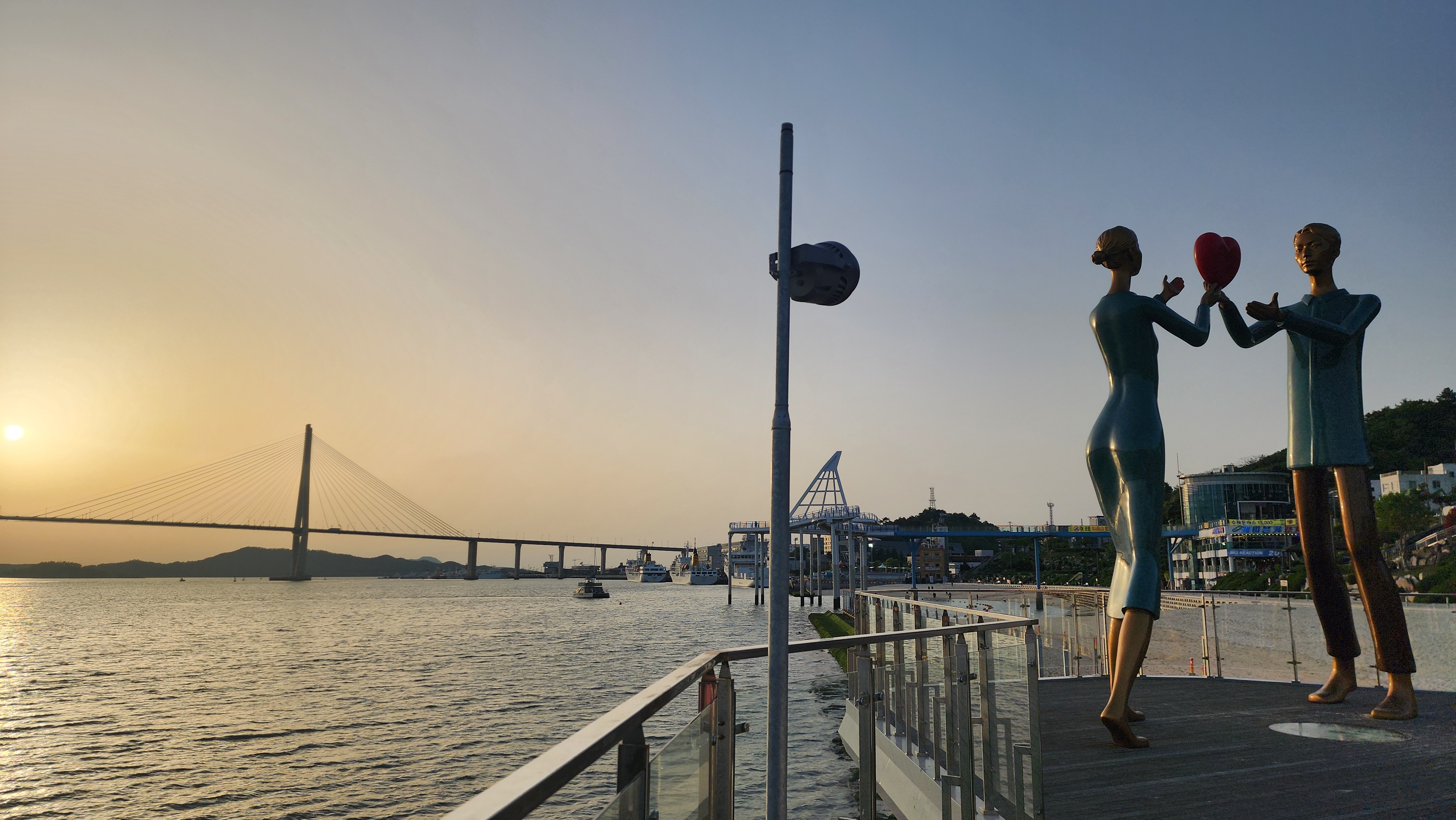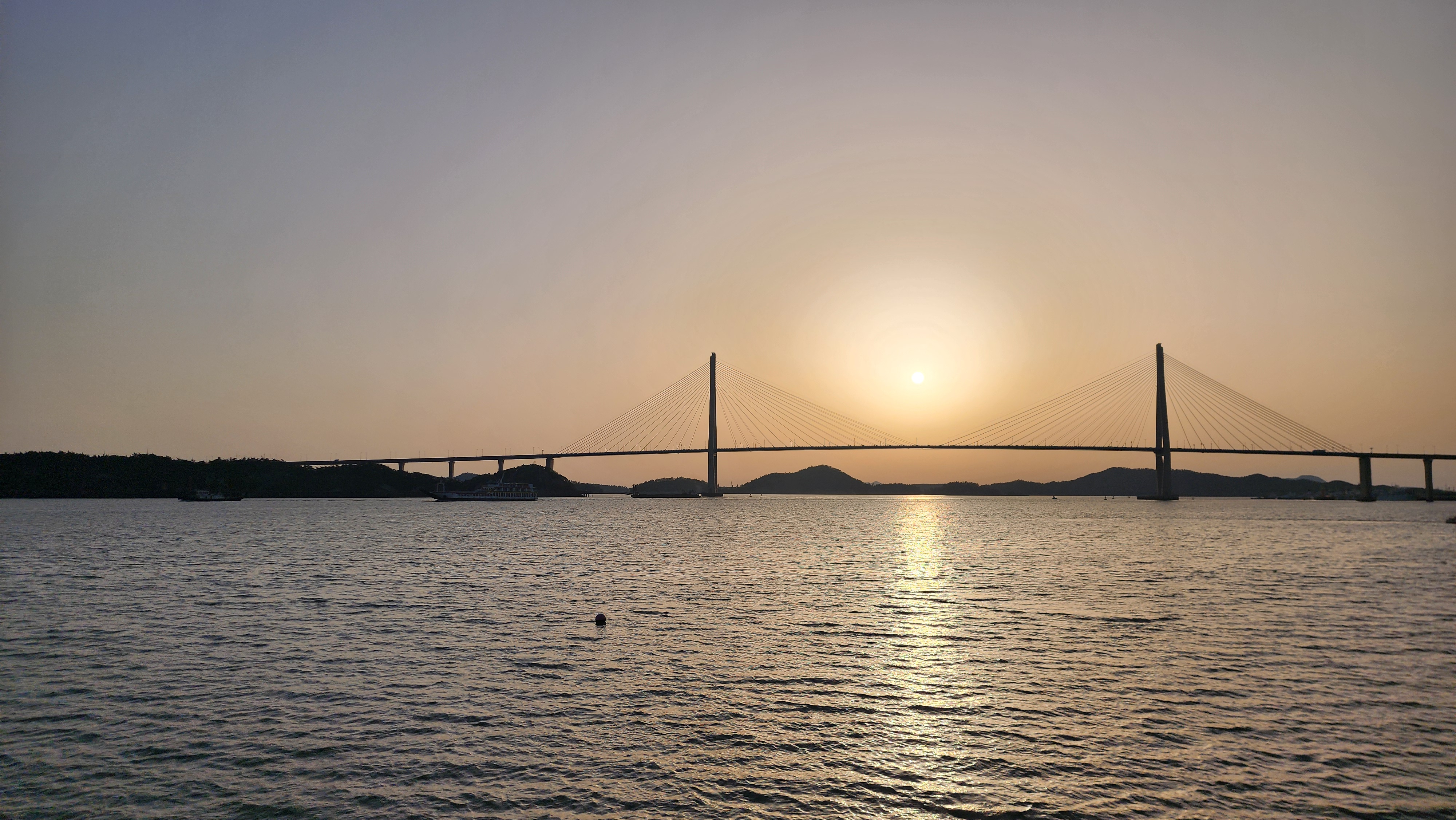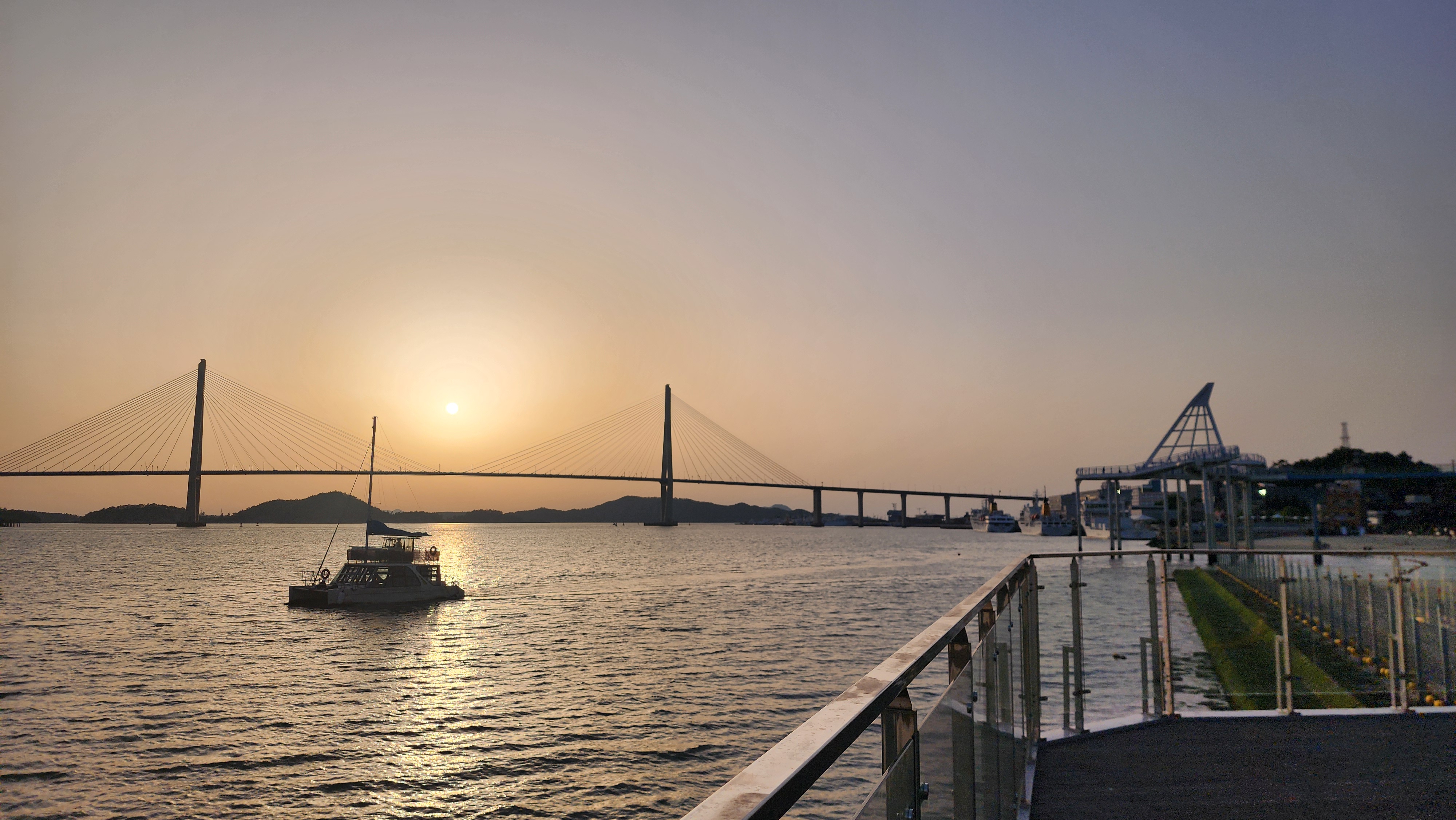 석양의 태양과 바다, 다리가 다시 봐도 참 멋지네요.