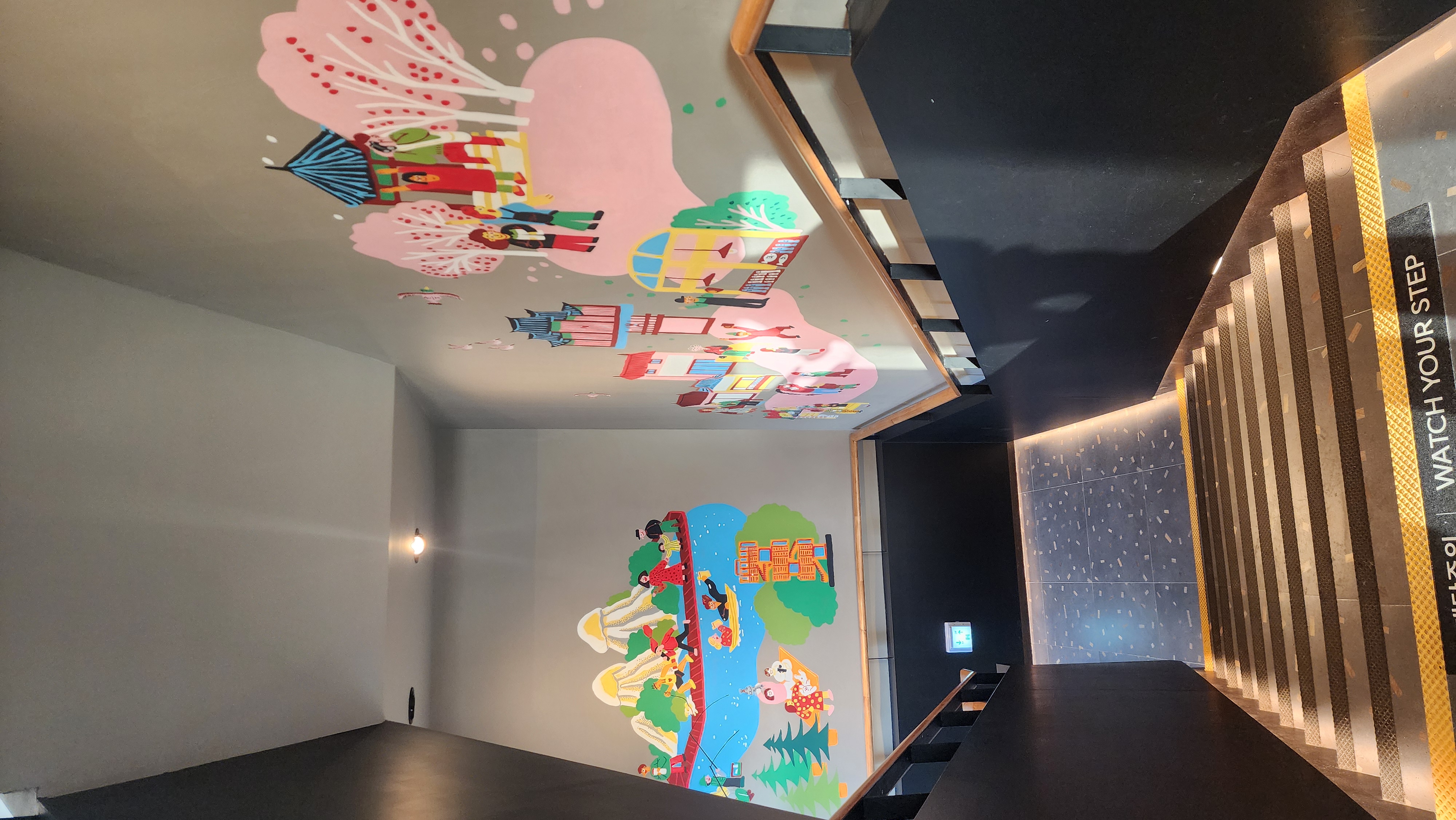 카페 계단에 벽화도 예쁘게 그려져 있어요~^^