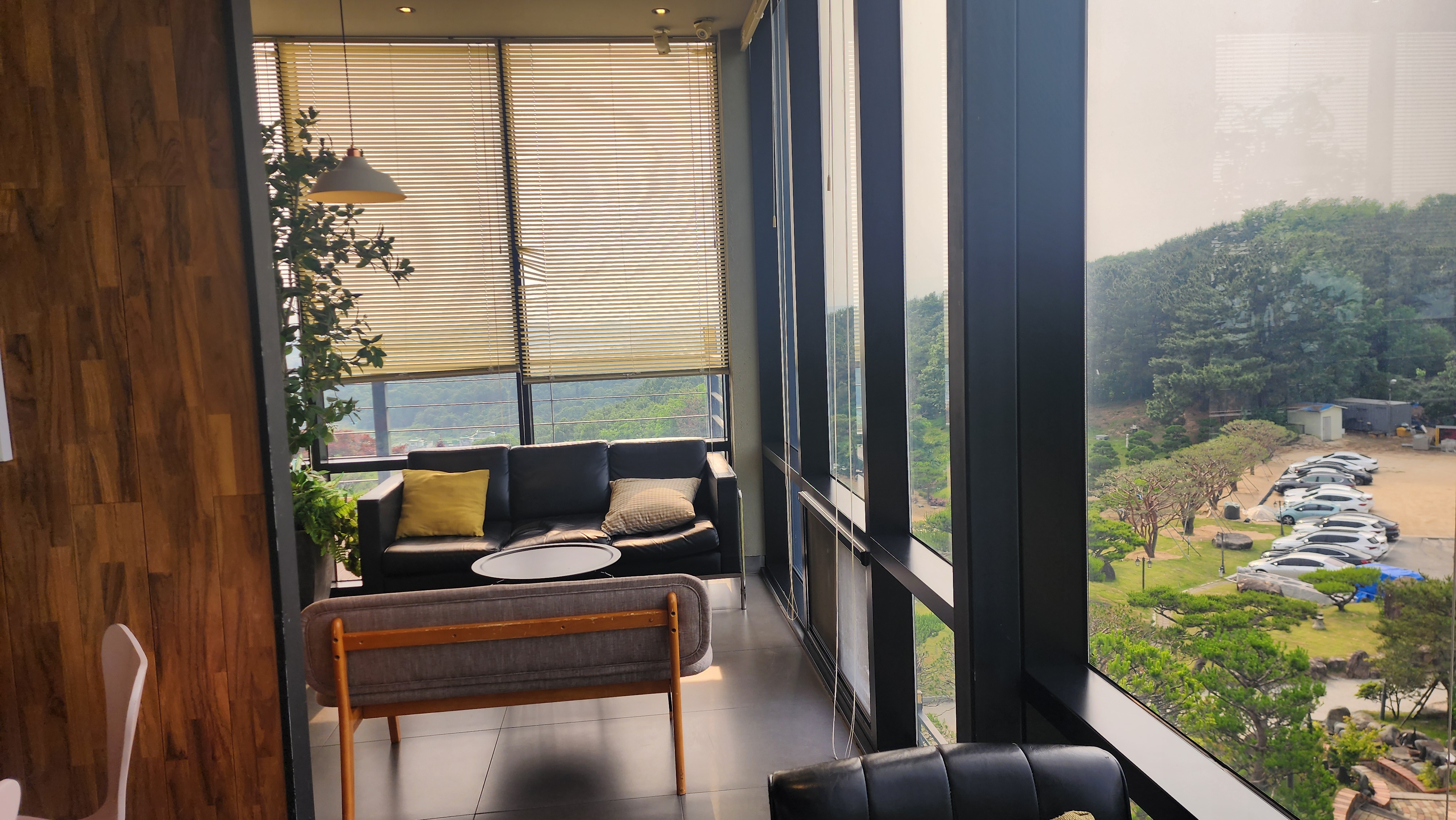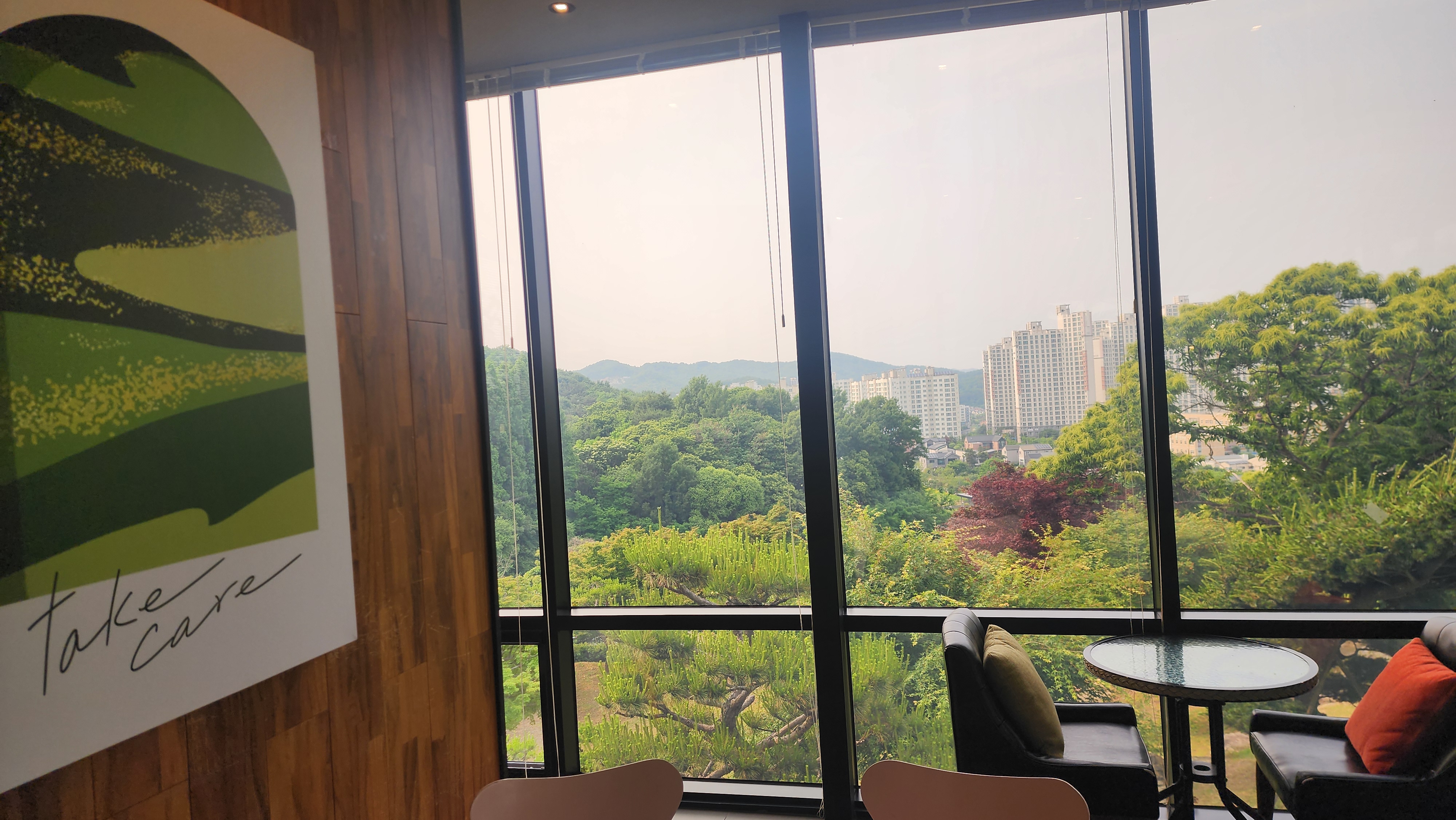 이렇게 카페 창밖으로 탁 트인 산 풍경이 보여서 시원하고 아름다워요.