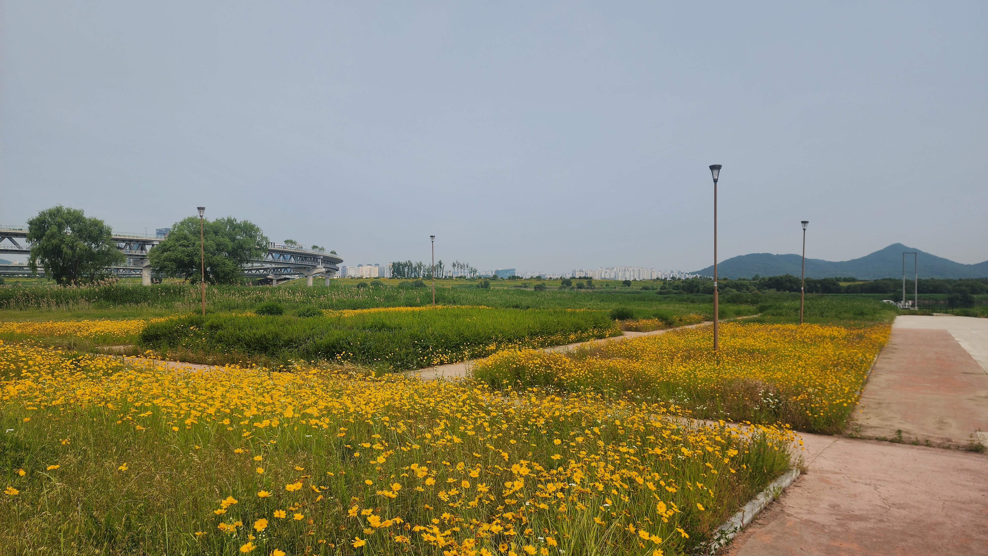 금강변을 노랗게 덮은 금계국들과 금강수변공원의 장미정원에 덮힌 장미들로 이 초여름이 눈부십니다.