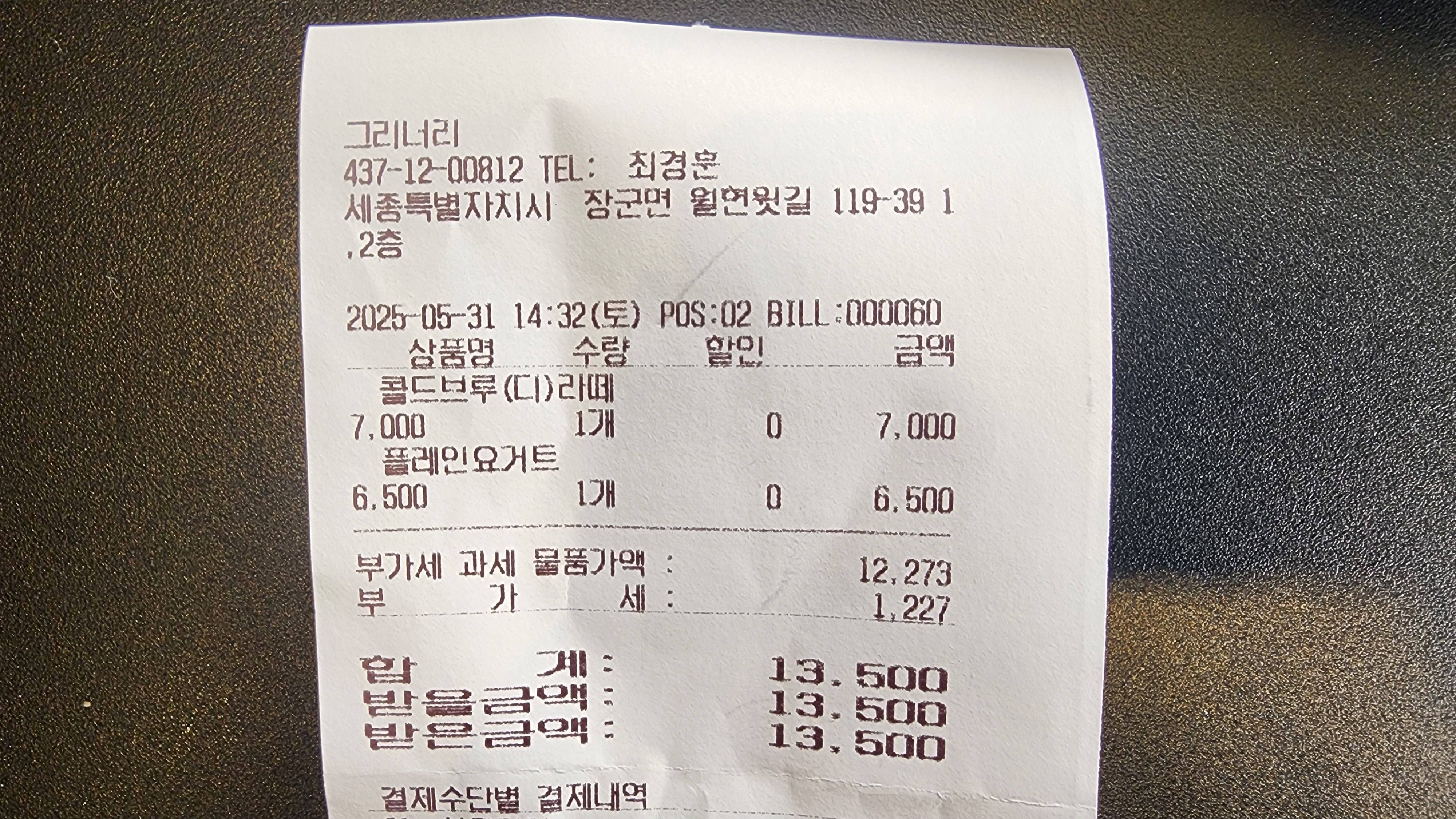콜드브루 디카페인 라떼와 플레인 요거트 주문해서 맛있게 마셨습니다.